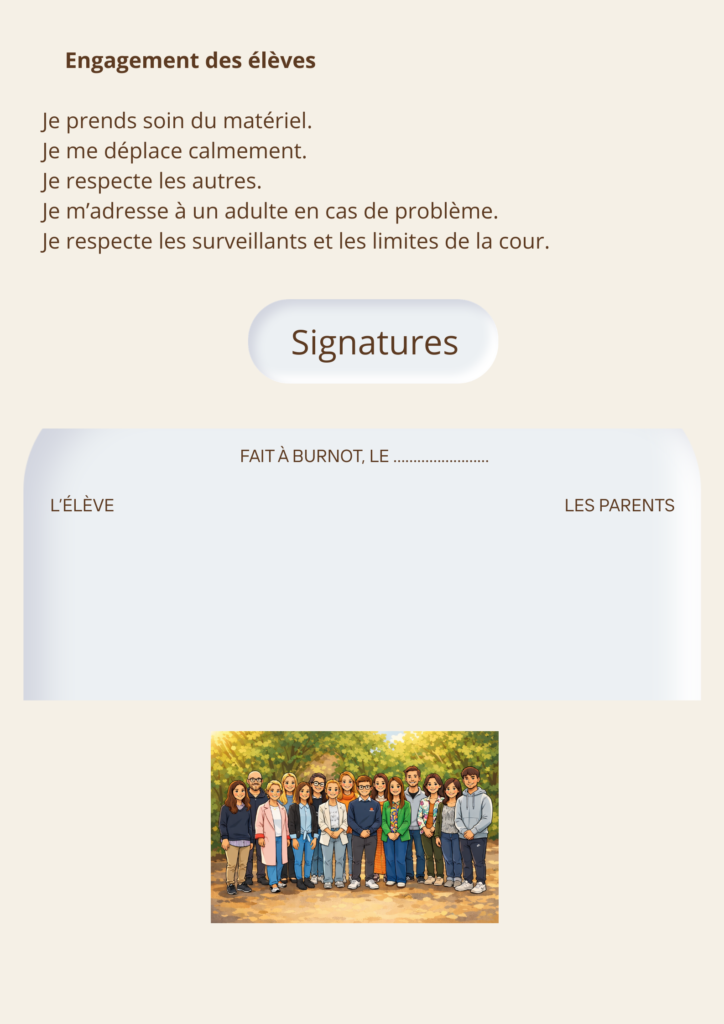 En signant le ROI en début d’année, chaque famille marque son adhésion au projet éducatif de l’école et son engagement à en respecter les règles pour le bien de tous.